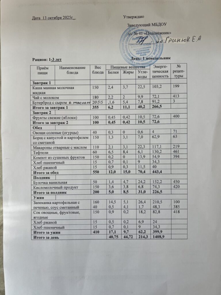 Меню ежедневного горячего питания | Меню приготовления блюд 3-7 лет Меню приготовления блюд 1-3 года Приказ №4/1 от 09.01.2025г. «Об утверждении примерного 10-ти дневного цикличного меню по технологическим картам на 2025 год» |